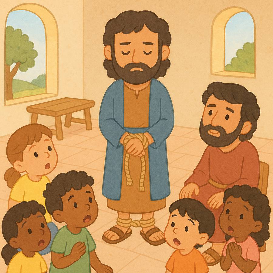 Divida as crianças em pequenos grupos e peça que façam uma curta encenação da história de Paulo e o profeta Ágabo. Incentive-as a representar os diferentes sentimentos: preocupação dos amigos, confiança de Paulo e obediência a Deus. - Caça ao versículo