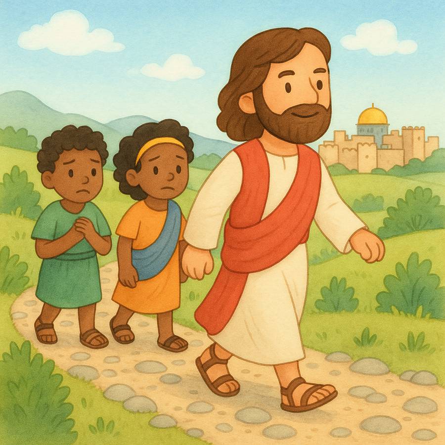 Ajude as crianças a decorar esse versículo repetindo-o algumas vezes juntos. Você pode usar gestos para marcar as palavras principais (ex.: mostrar força nos braços ao dizer “seja forte” ou apontar para o chão ao dizer “por onde você andar”).