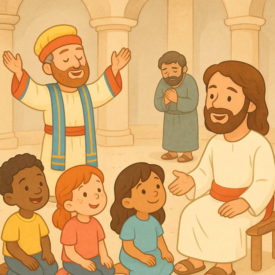 Certo dia, Jesus estava ensinando muitas pessoas. Entre elas, havia algumas que pensavam ser melhores que os outros porque sempre seguiam as regras. Porém, essas pessoas olhavam com desprezo quem cometia erros ou não se comportava como elas.