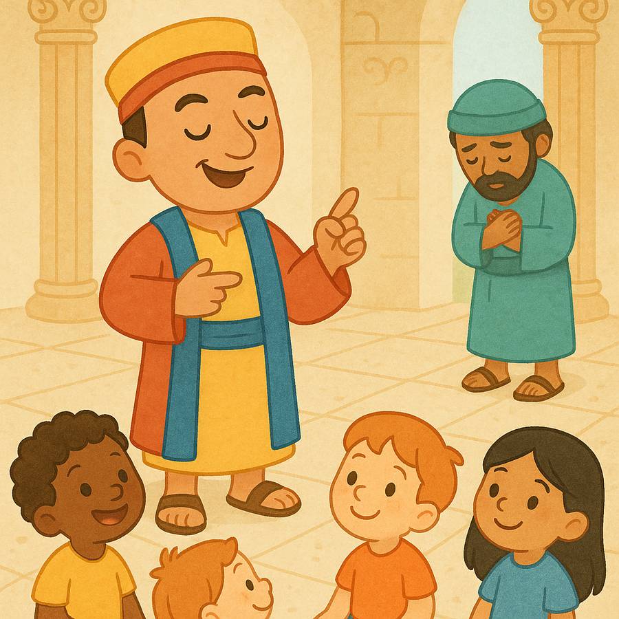 - Romanos capítulo 3 explicado para crianças: o que significa ser justificado por Deus - Cena 2: O fariseu e o cobrador de impostos no templo