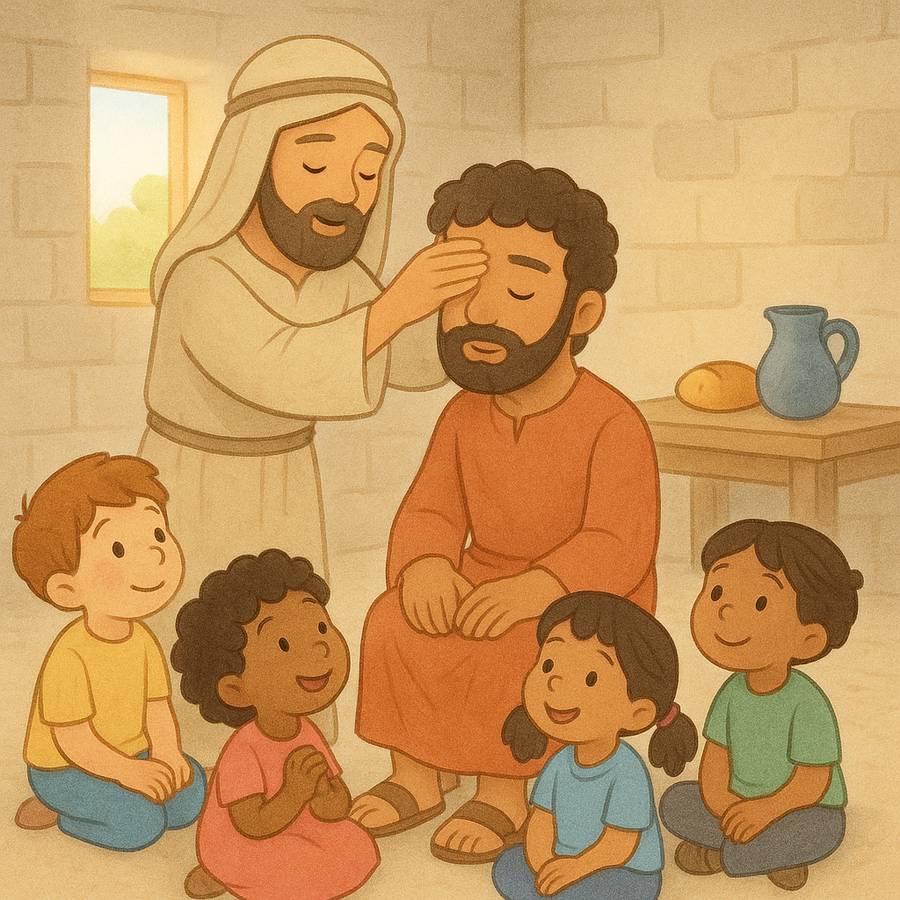 - Romanos capítulo 6 explicado para crianças: o que significa viver em novidade de vida - Cena 3: Ananias ajuda Saulo a enxergar novamente