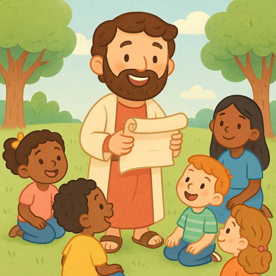 Dica: transforme isso em um desafio divertido! Faça as crianças repetirem o versículo várias vezes com vozes engraçadas (voz de robô, voz suave etc.) até aprenderem.